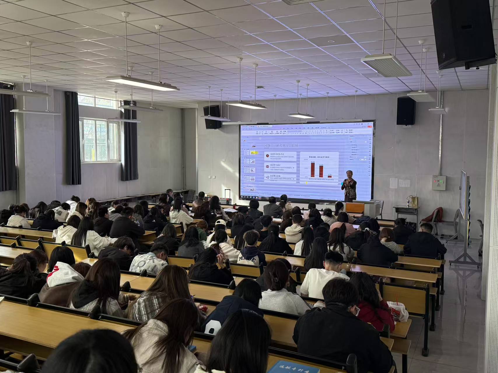 讲座伊始,吴彩琴副主任致辞。她介绍,张虎玲老师长期深耕国学与教育文化研究,致力于弘扬中华优秀传统文化。《学记》是我国古代最早、最具系统性的教育典籍,蕴藏着千年传承的育人智慧,希望全体师生在经典中汲取力量,思考新时代教与学的方向。